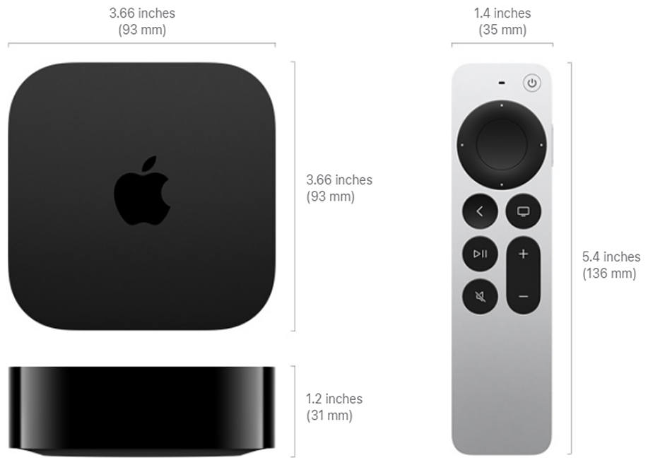 | Подробная комплектация | Apple TV 4K 3‑го поколения, пульт Siri Remote, кабель питания, документация |