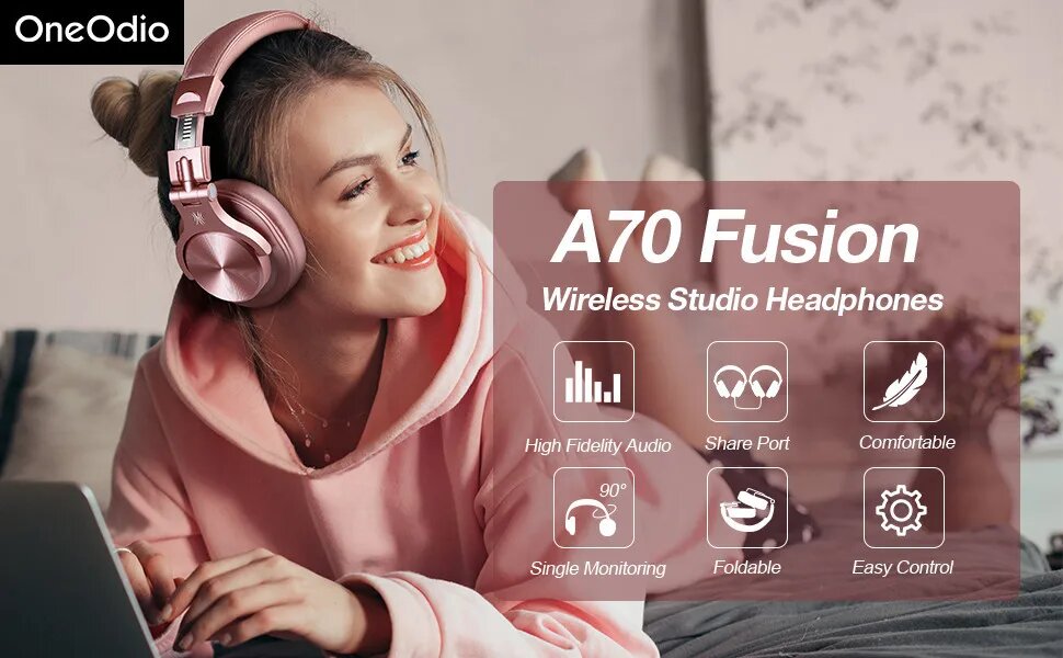 Беспроводные наушники OneOdio Fusion A70, розовый