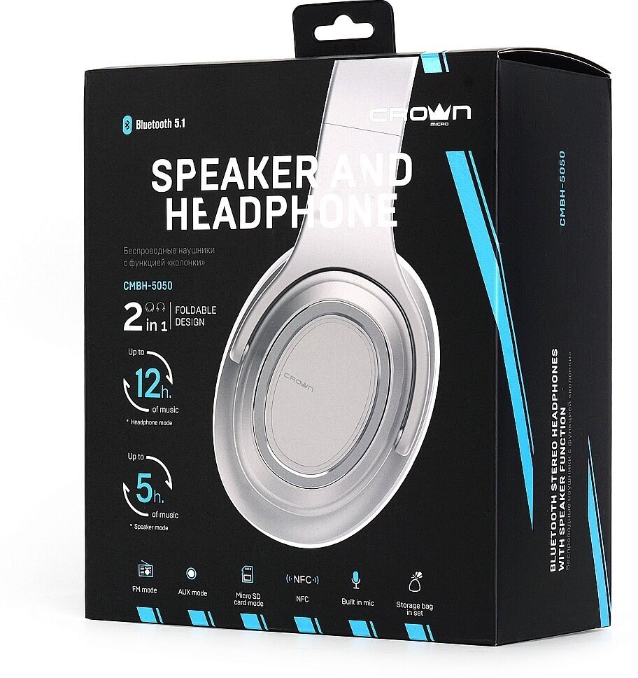 Гарнитура беспроводная CROWN Micro CMBH5050, Bluetooth 5.1, серебристая интересное:
