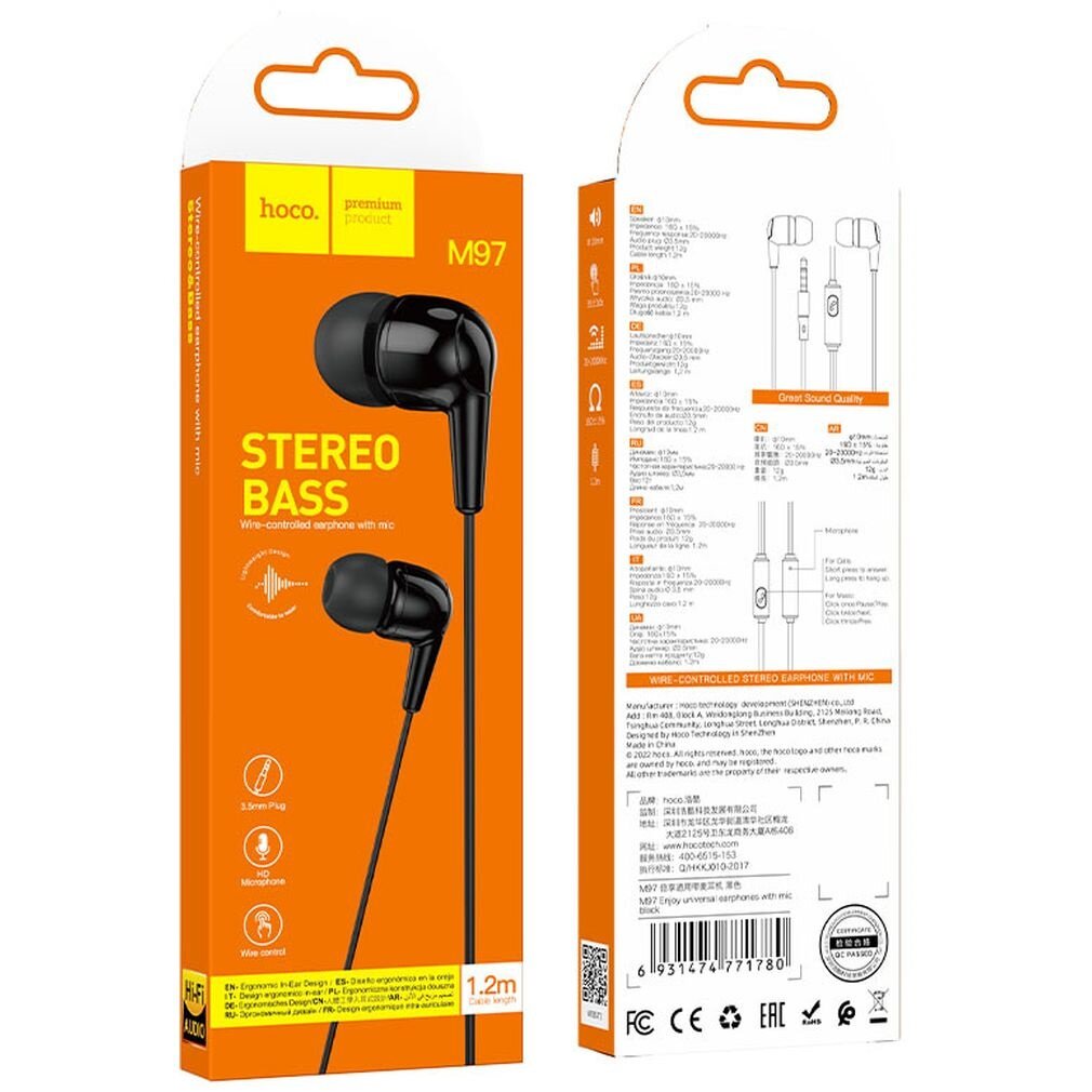 Наушники внутриканальные HOCO M97, кабель Jack 3.5mm, 1.2м, цвет: чёрный