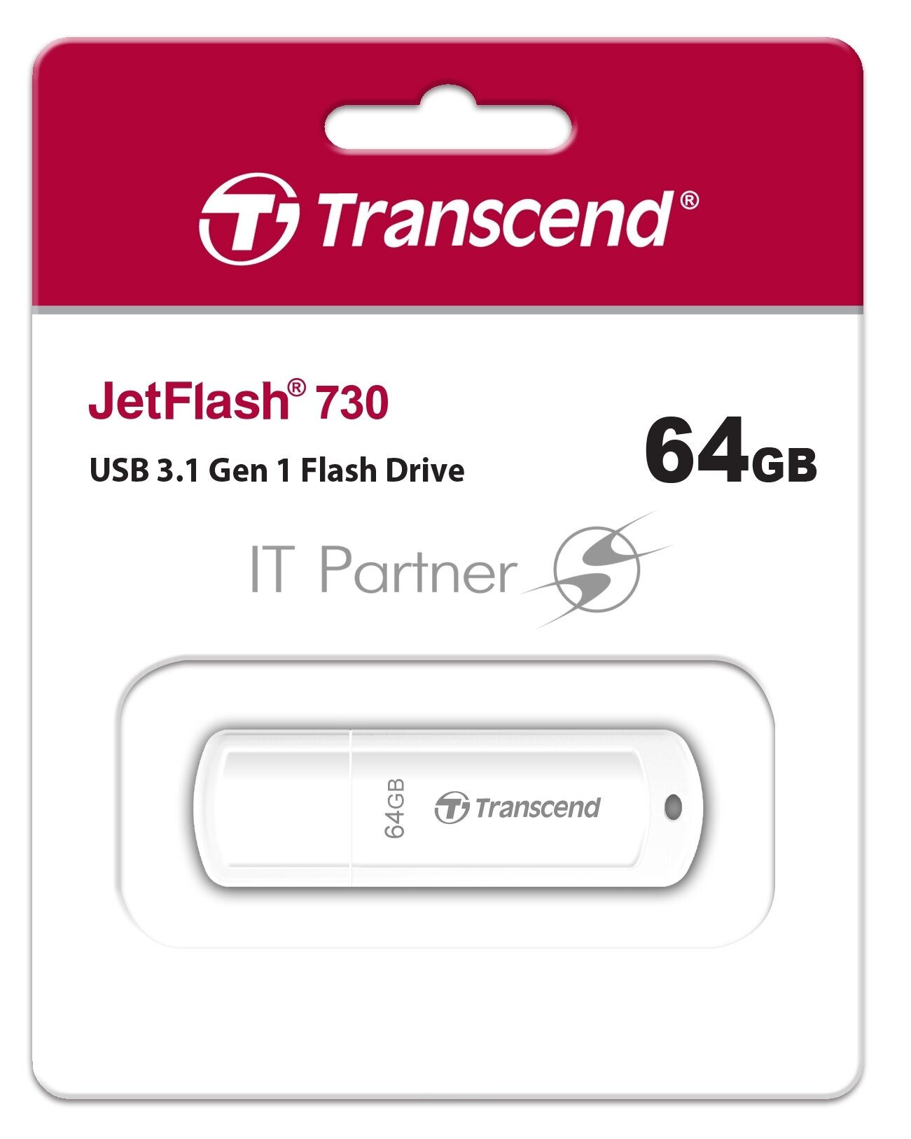 Флешка Transcend JetFlash 730 64 ГБ, 1 шт., белый