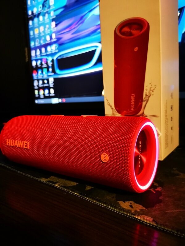 | Отзыв: | На первый взгляд это обычная портативная колонка, но вы посмотрите, насколько она технологически наворочена. Справа и слева можно заметить пассивные излучатели. На лицевой стороне есть объемная резиновая надпись HUAWEI, а справа значок NFC. Световые эффекты дают нам понять, что на колонке происходит: воспроизведение музыки, голосовой вызов или включен режим стерео. Меняются цвета. А еще в колонку встроили три микрофона для работы в режиме гарнитуры или громкой связи. |