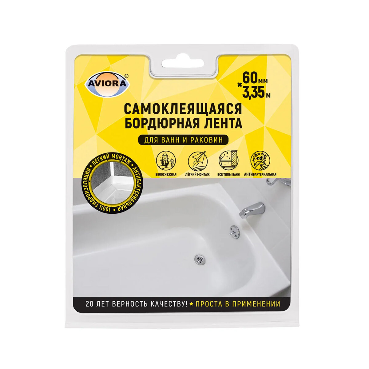 Купить Лента бордюрная для ванн и раковин Aviora, 60 мм x 3,35 м, белая