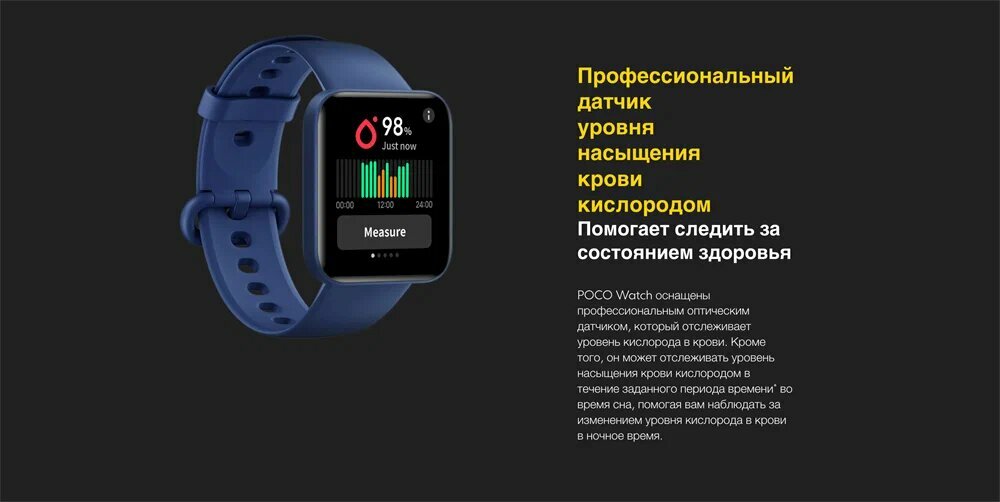 Умные часы Xiaomi POCO Watch 20 мм без NFC, синий