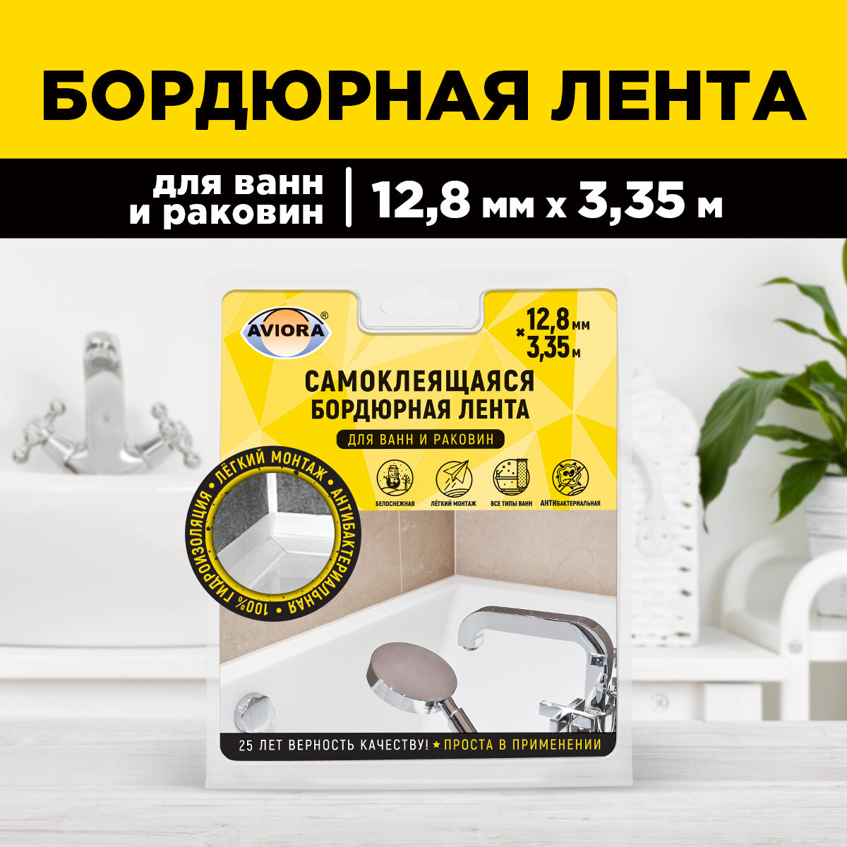 Бордюрная самоклеящаяся лента Aviora для ванн и раковин, 12,8 мм х 3,35 м