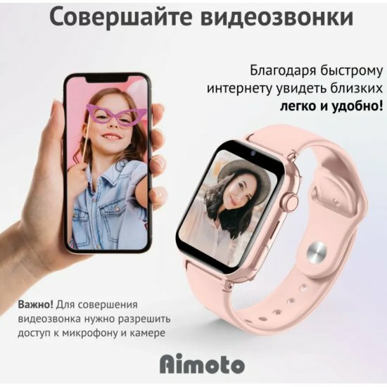 Смарт часы для детей 4G с GPS геолокацией, Aimoto Concept с видеозвонками, звонками, мощная батарея 670 мАч, смарт часы детские 4G с прослушкой, часы детские наручные для мальчиков и девочек, Розовый