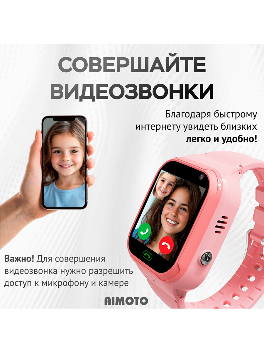 Смарт часы для детей 4G с GPS геолокацией, Aimoto Concept с видеозвонками, звонками, мощная батарея 670 мАч, смарт часы детские 4G с прослушкой, часы детские наручные для мальчиков и девочек, Розовый