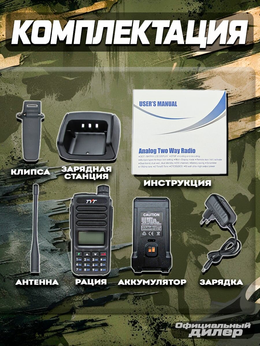 Рация TYT TH-UV98 Черная / Портативная радиостанция для охоты и рыбалки с аккумулятором на 3200 мА*ч и радиусом 10 км/ UHF; VHF; IP56