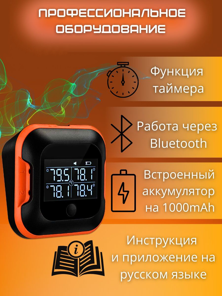 Термометр Prime Grill IBT-24S, пластик, с 4 щупами, Bluetooth, оранжевый интересное: