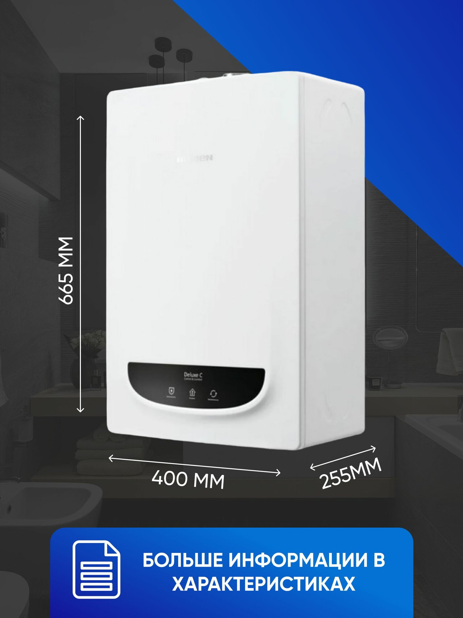 | Диаметр коаксиального дымохода | 60/100 мм |