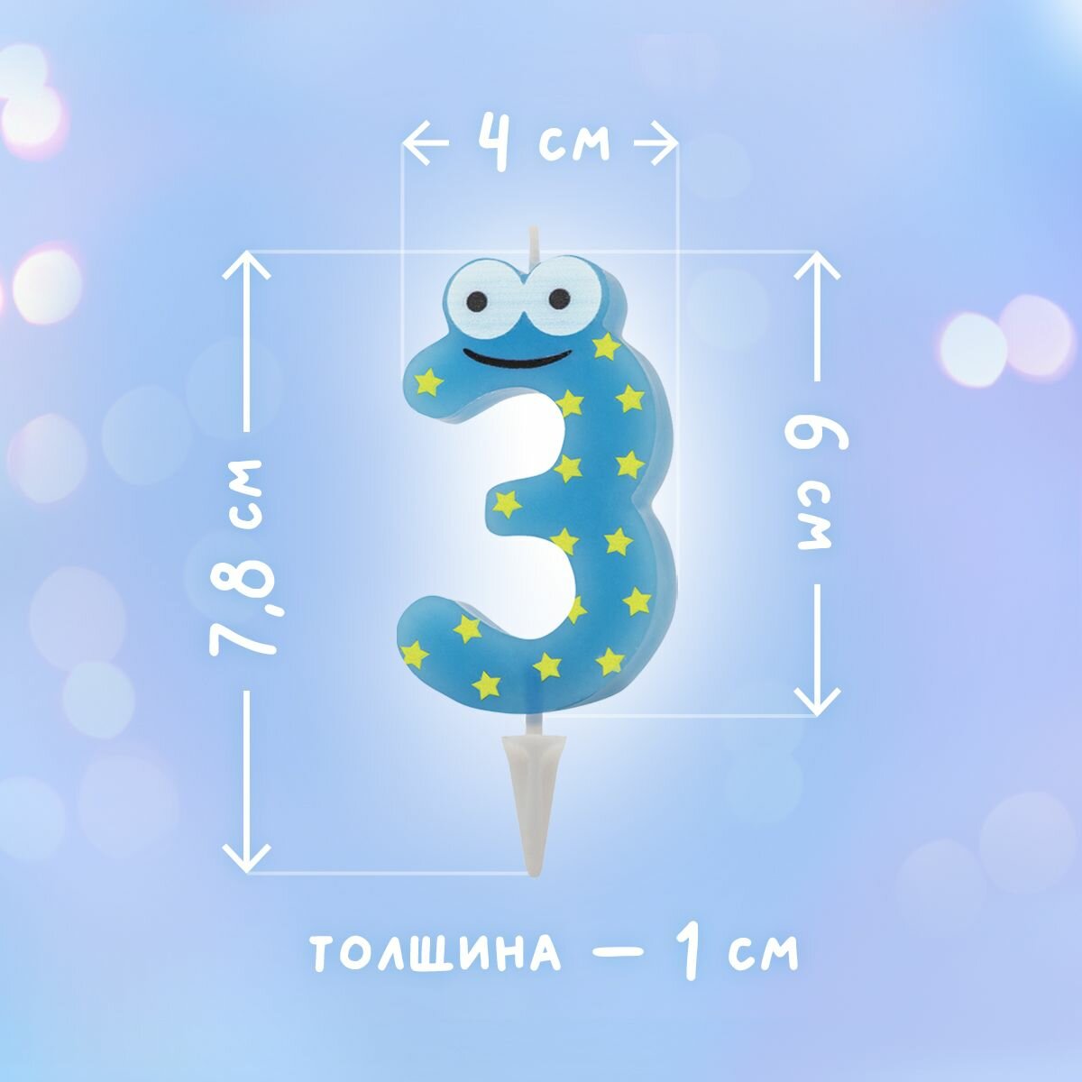 Свечи для торта PATERRA 1шт детская, цифра 3