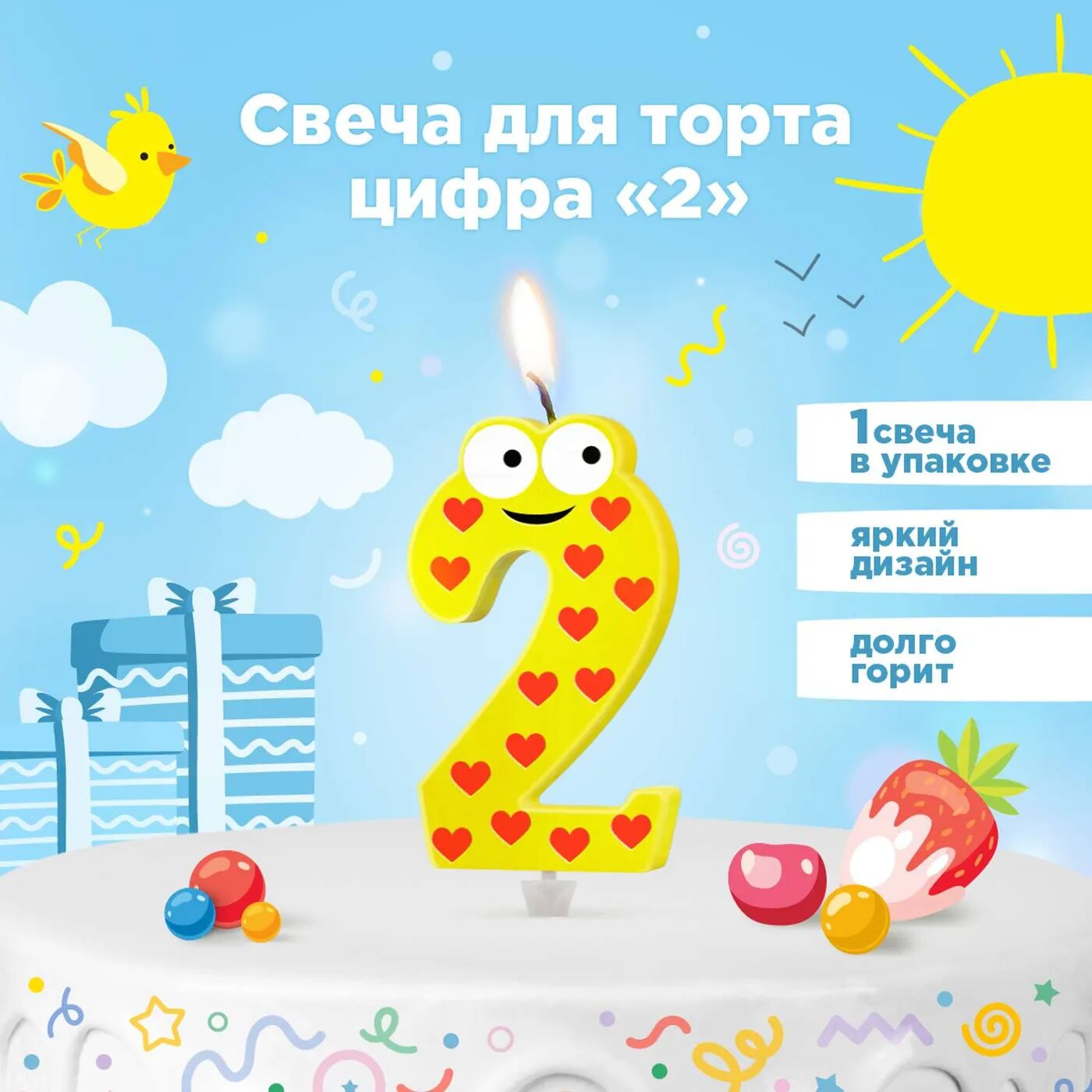 СохранитьСвеча детская для торта PATERRA, цифра 2 (1шт.в упаковке) интересное:
