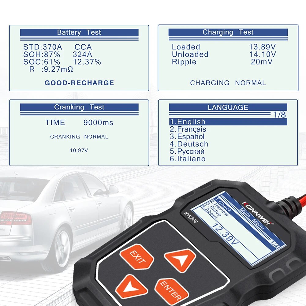 Автомобильный тестер АКБ автомобиля Konnwei KW208