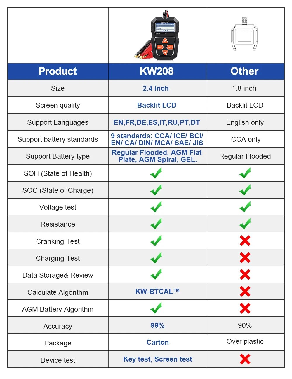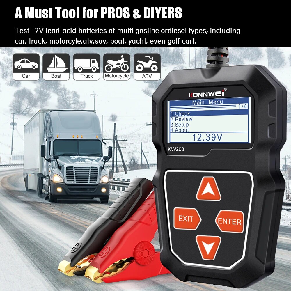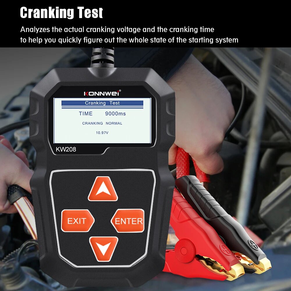 Тестер автомобильного аккумулятора KONNWEI KW208, 12 В, от 100 до 2000CCA