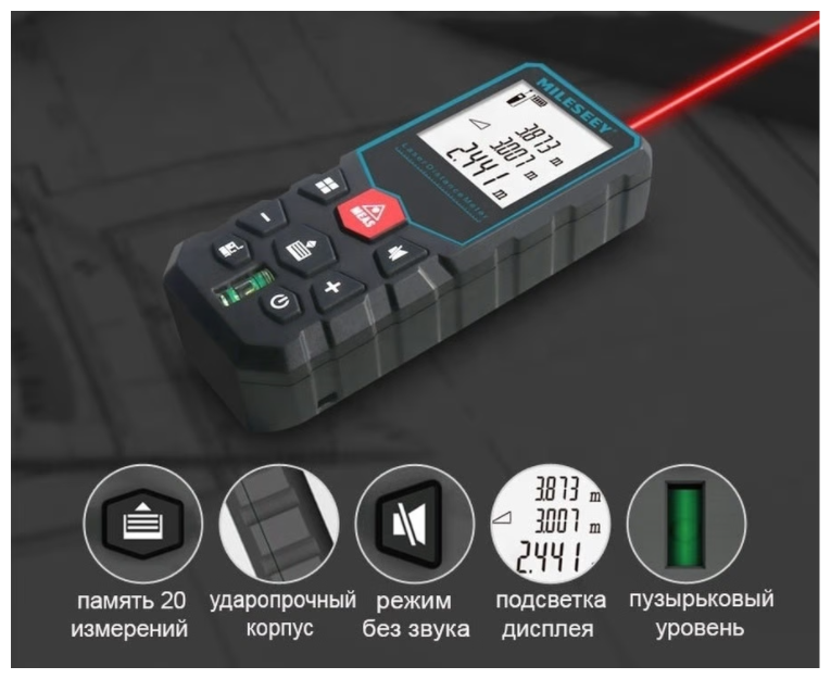 Ниже Вы можете прочитать отзывы на Дальномер лазерная рулетка Mileseey X5 60 метров + Чехол, Прочный корпус, ознакомится с подробными характеристиками, посмотреть интересные обзоры и фотографии на Дальномер лазерная рулетка Mileseey X5 60 метров + Чехол, Прочный корпус.