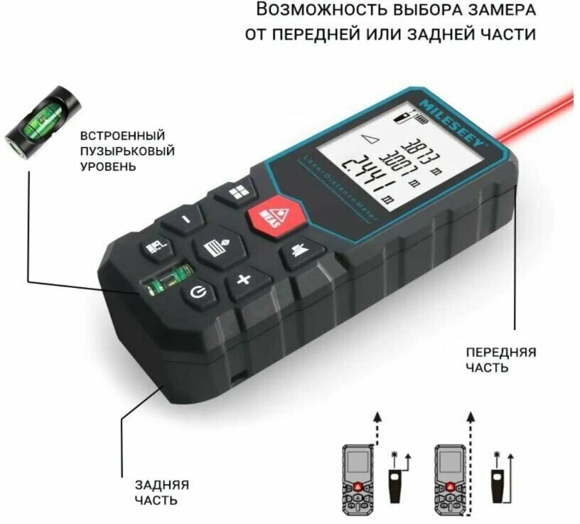 Лазерный дальномер 100 метров дальность MILESEEY Лазерная рулетка