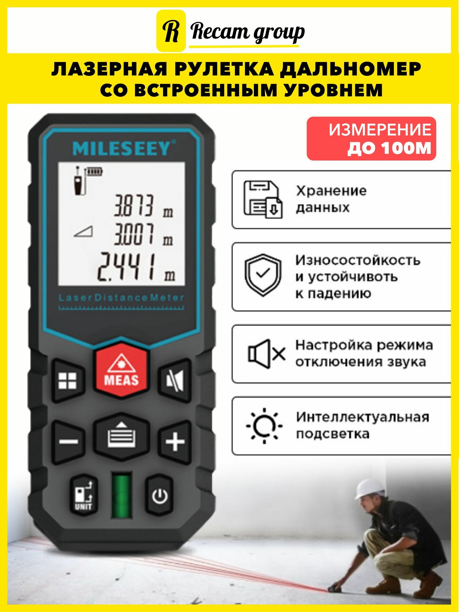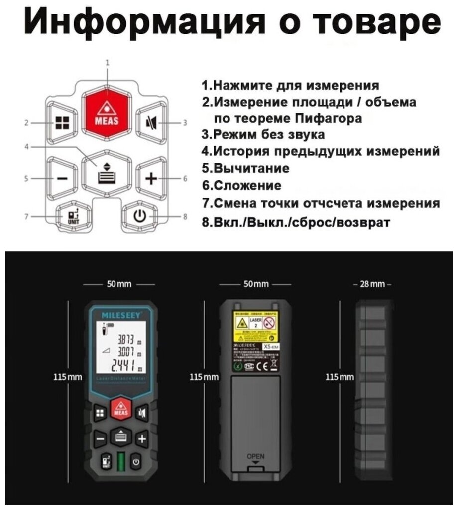 Лазерный дальномер Mileseey X5 100 м интересное: