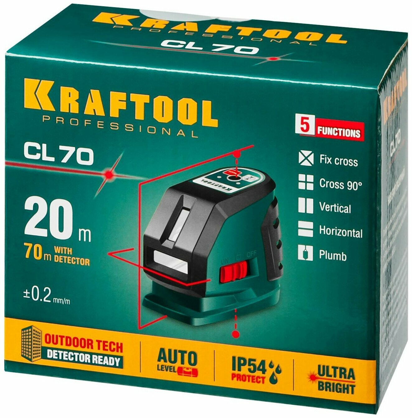 KRAFTOOL CL-70 Нивелир лазерный линейный, 20м / 70м /детектор/, сверхъяркий, 34660, IP54, 34660