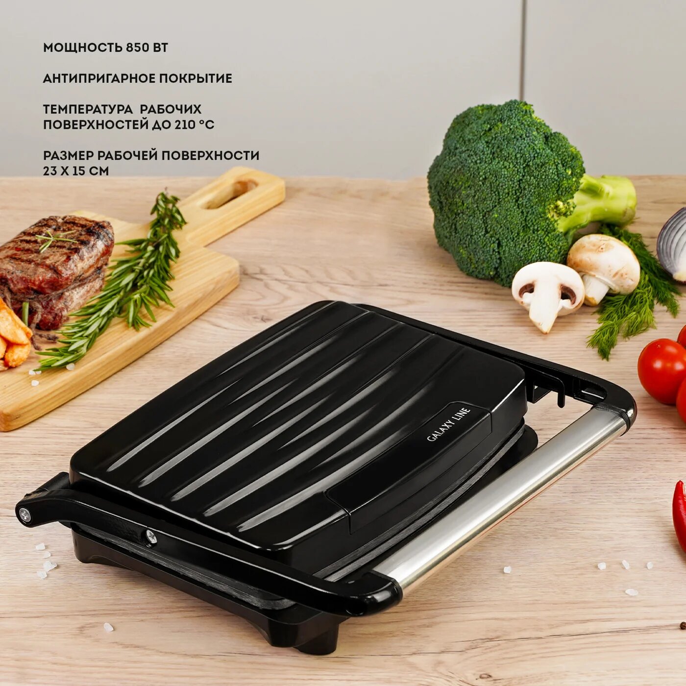 Гриль электрический Galaxy GL 2973, 850 Вт, антипригарное покрытие, чёрный