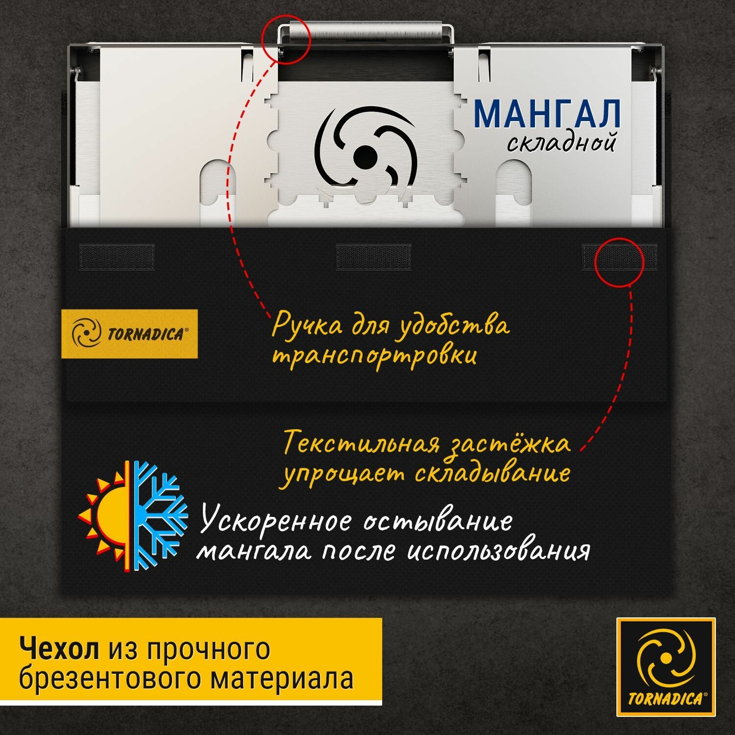 Мангал складной Торнадика с сумкой из высокопрочной стали с аэро тоннелем в днище мангала (Tornadica)