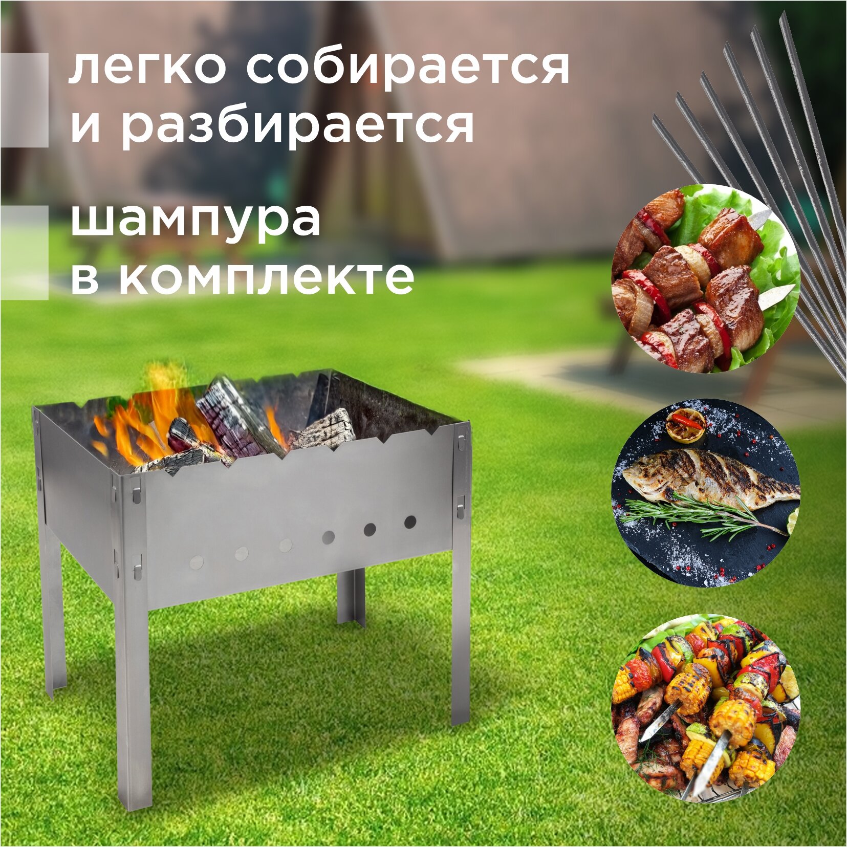 | Плюсы: | толстый металл, лекго собрать и разобрать, удобные шампуры. |