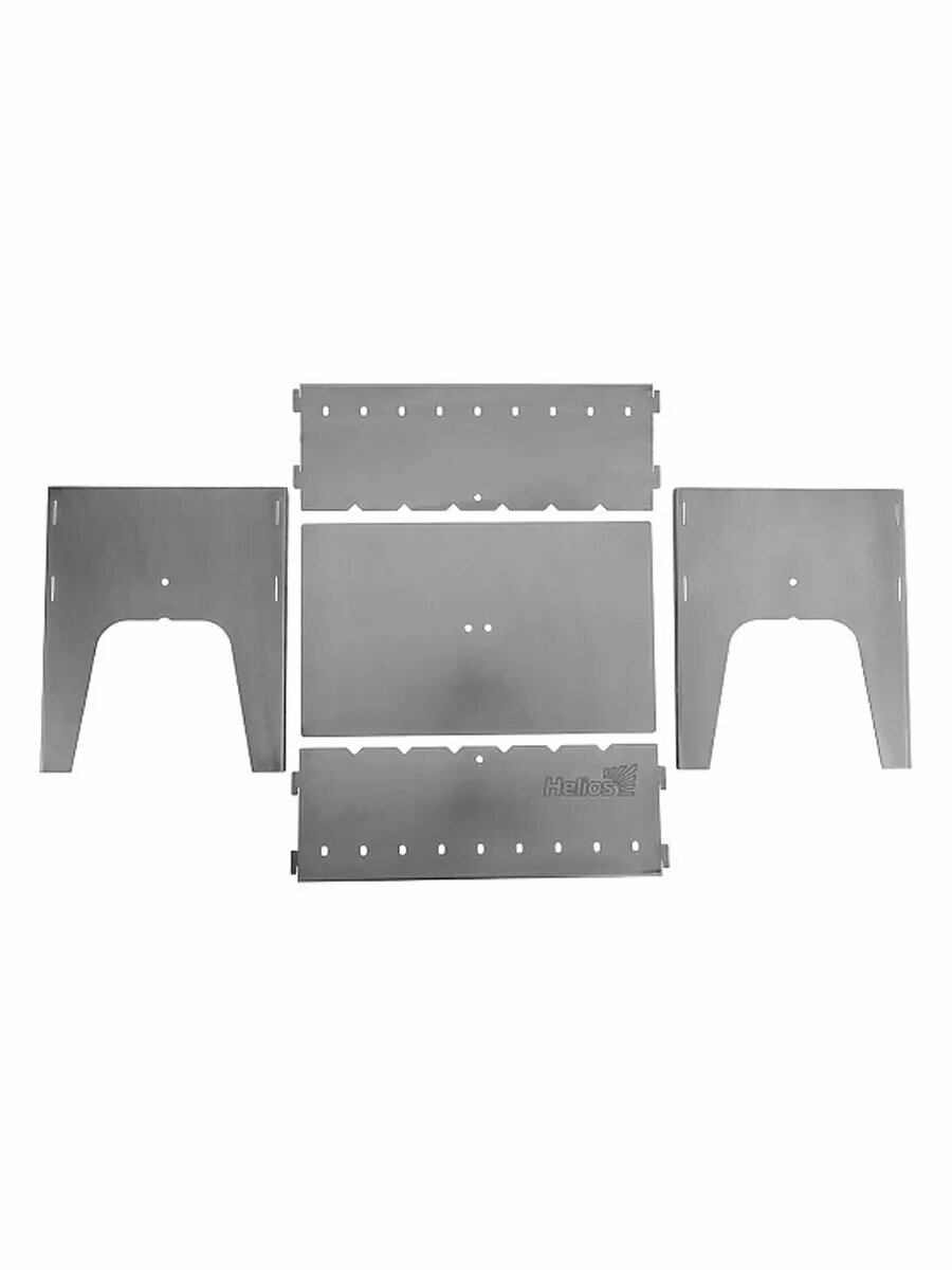 Толстый металл, не ведет при нагреве и перегреве, легкая сборка, крепкий, стоит уверенно. Удобная сумка.