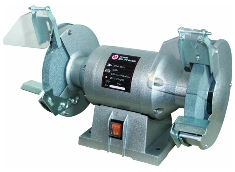 Точильный станок Калибр ТЭ-175/400 с асинхронным двигателем металлический корпус серебристый 2 круга 2950об/мин мощность 400Вт / электроточило