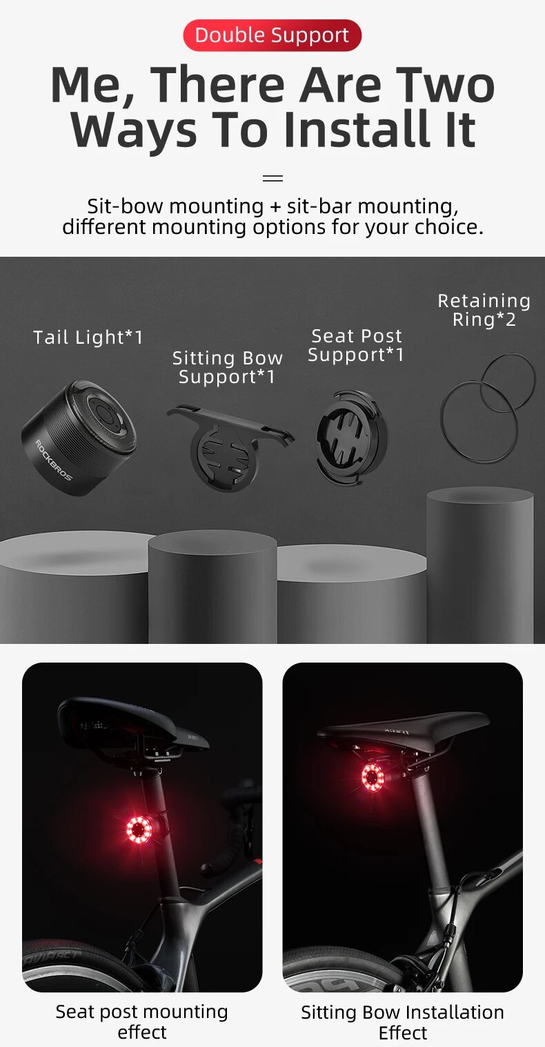 ROCKBROS Велофонарь задний водонепроницаемый, Q1 интересное: