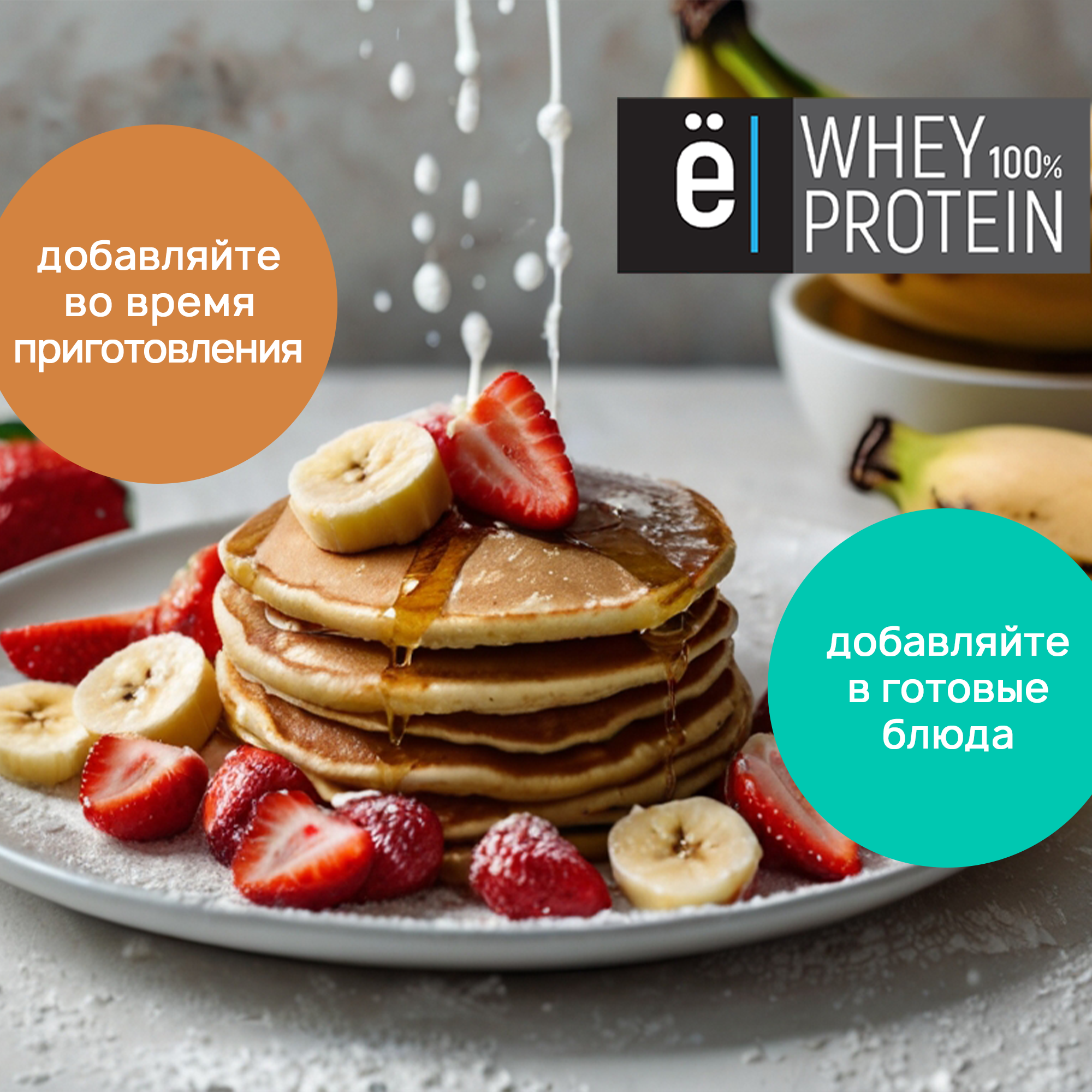 Протеин ё|батон Whey Protein, сывороточный, натуральный вкус, с витаминами, 900г