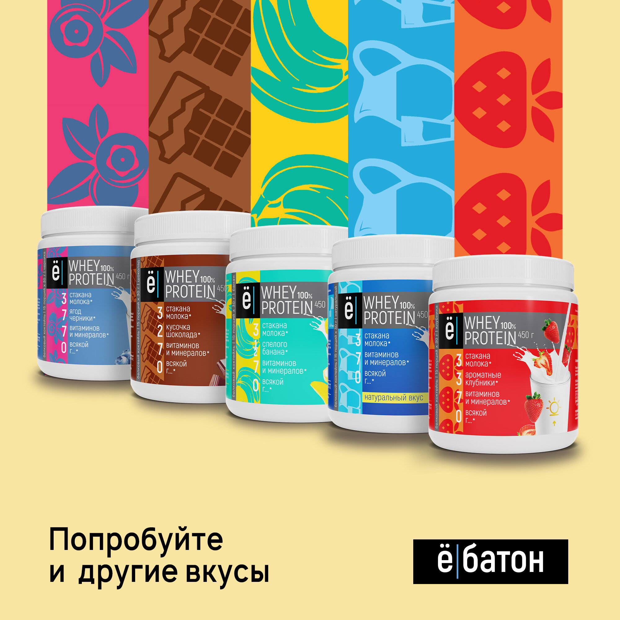 Белковый коктейль ё|батон "Whey Protein", протеин, сывороточный, нейтральный вкус, с витаминами, 450г