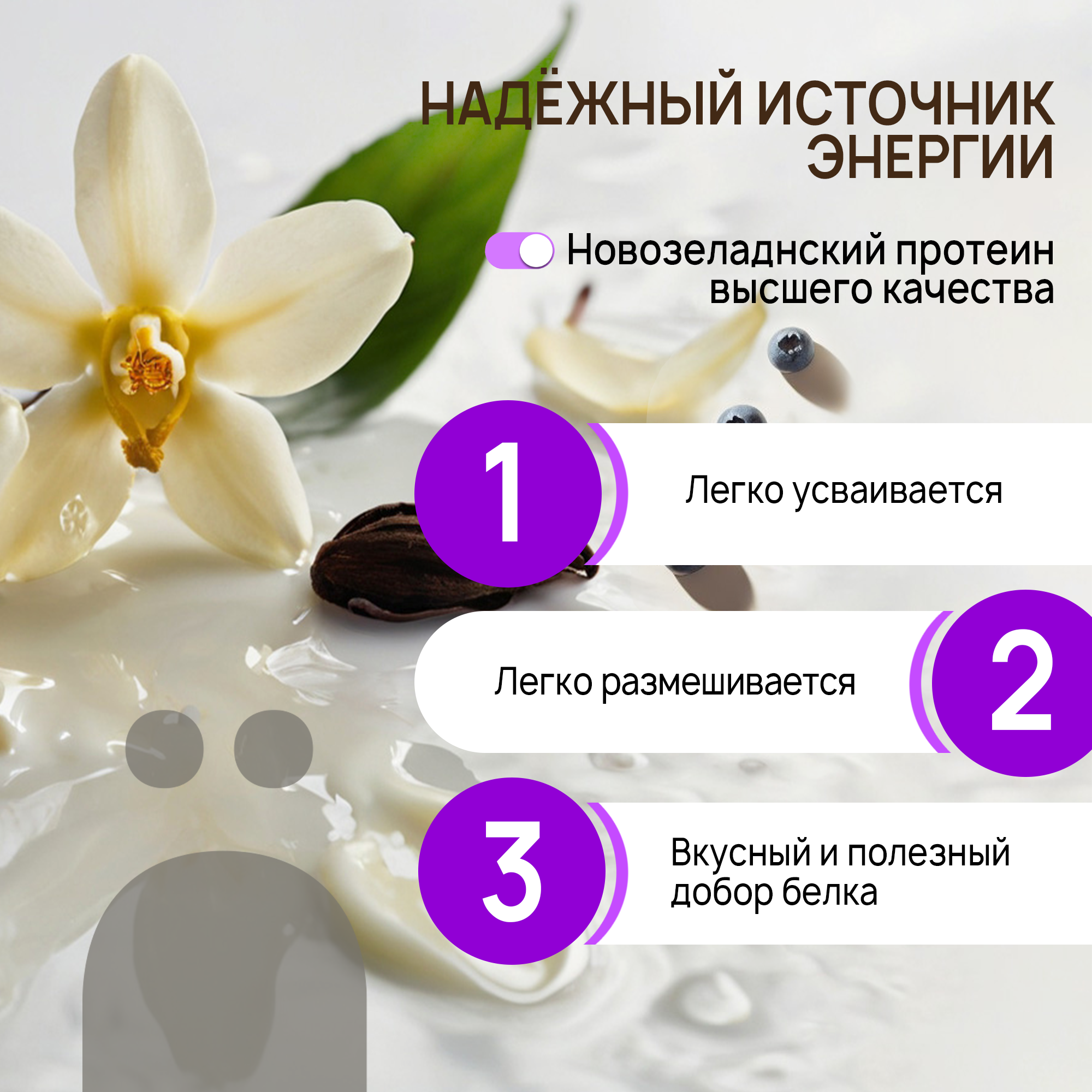 | Плюсы: | Белок есть белок. Отлично взбивается с молоком за минуту+. |