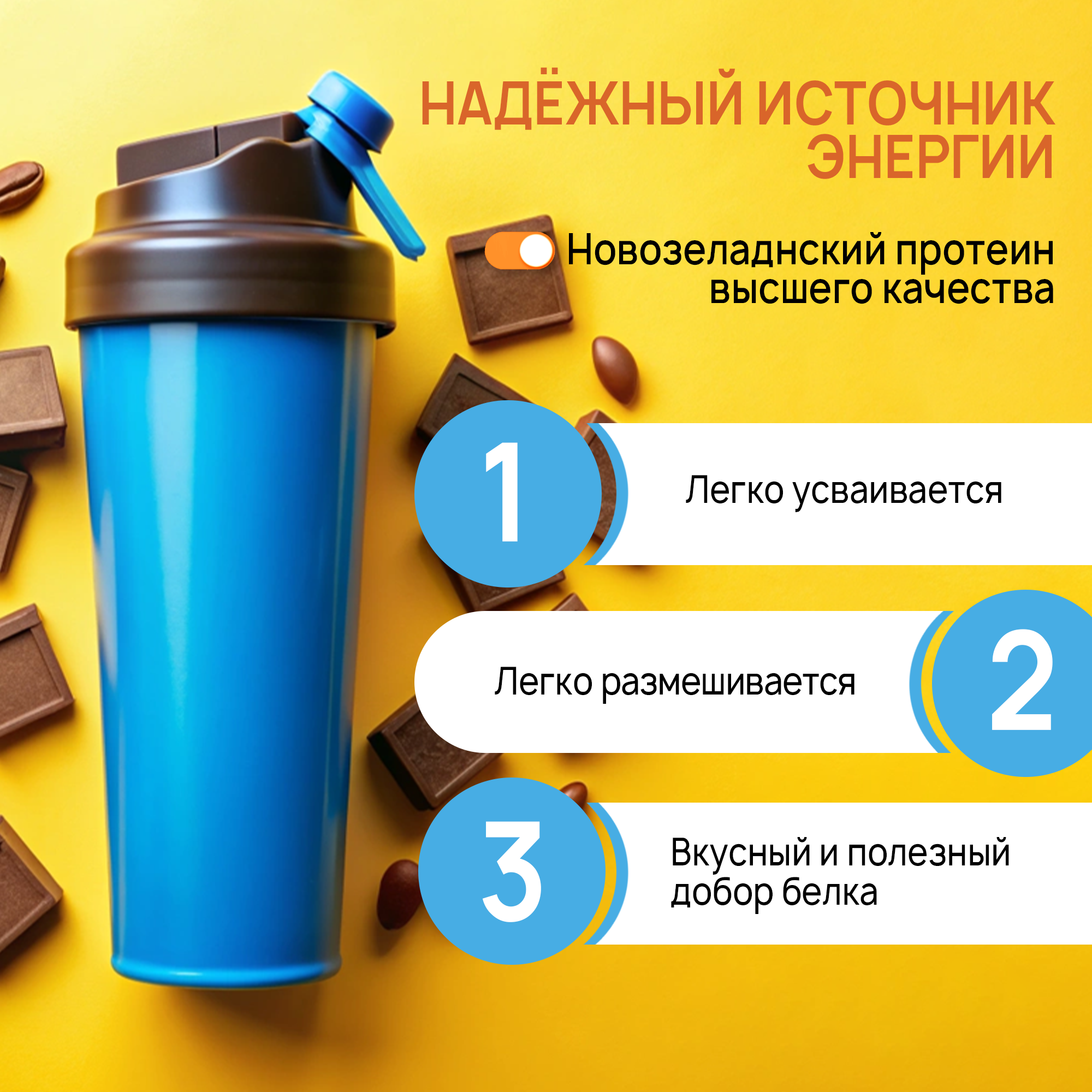 | Плюсы: | Белок есть белок. Отлично взбивается с молоком за минуту+. |