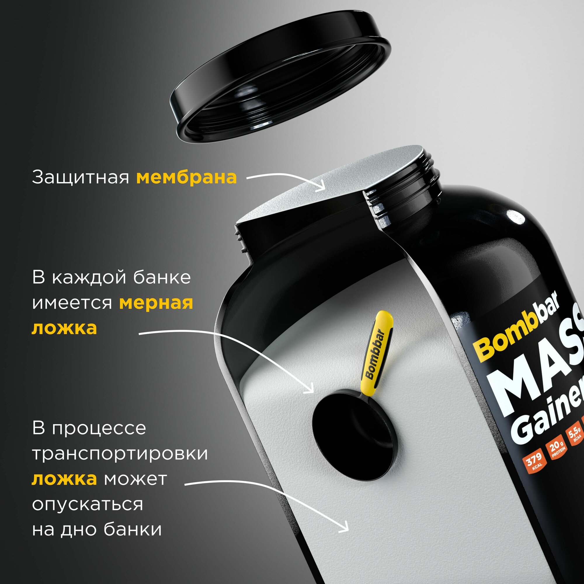 Bombbar Mass Gainer Pro Коктейль Гейнер для набора массы "Банановый коктейль", 2700г