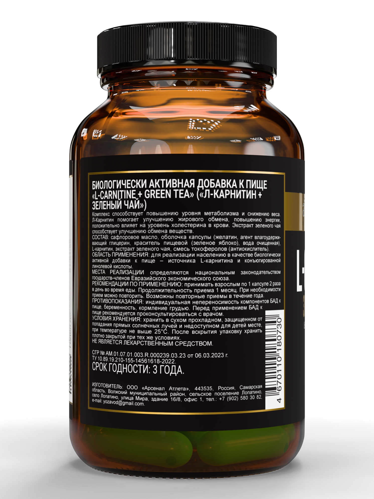 L картинин, L-Carnitine + Зелёный чай, жиросжигатель для похудения, 60 капсул