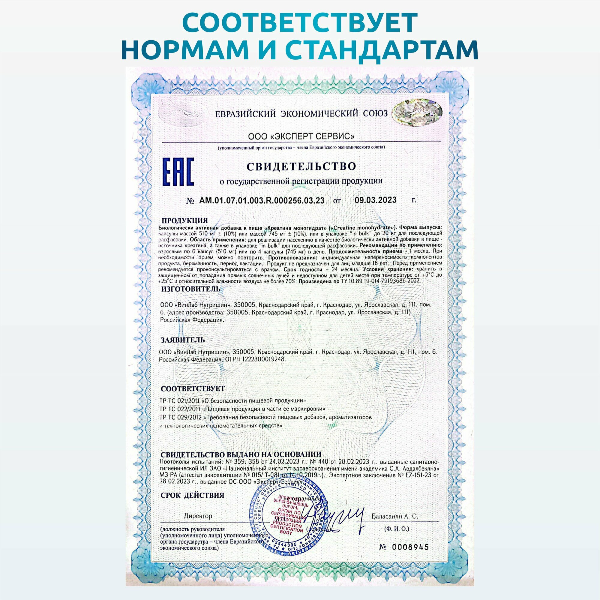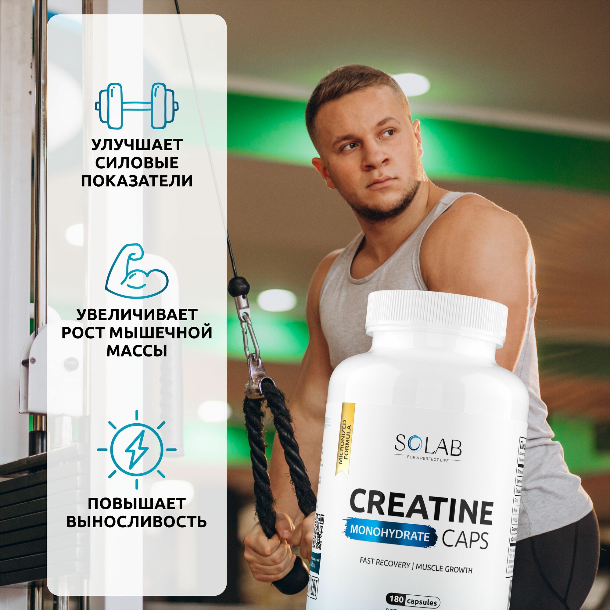 SOLAB Креатин моногидрат в капсулах Creatine Monohydrate, 180 капсул, спортивное питание для набора массы тела
