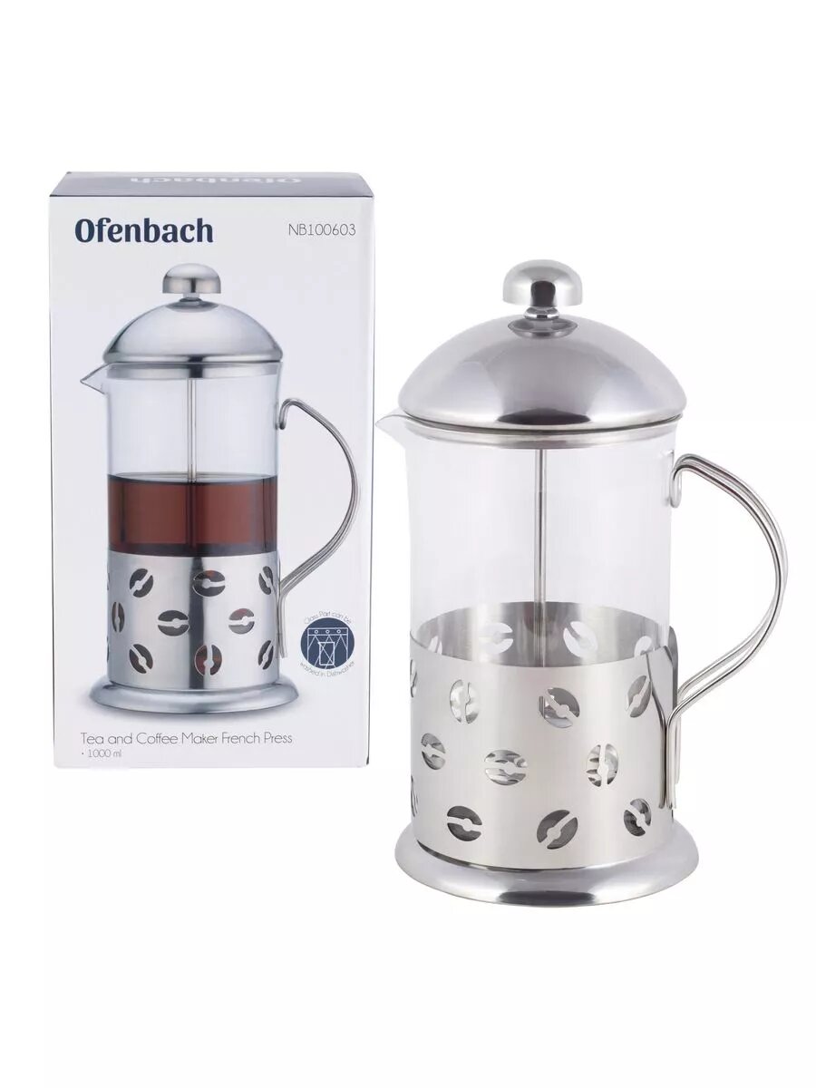 Френч-пресс 800 мл. Ofenbach NB100602 стекло, нержавеющая сталь (0,8 л. / серебристый)