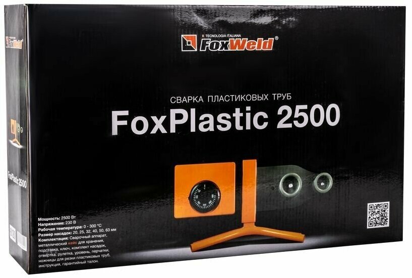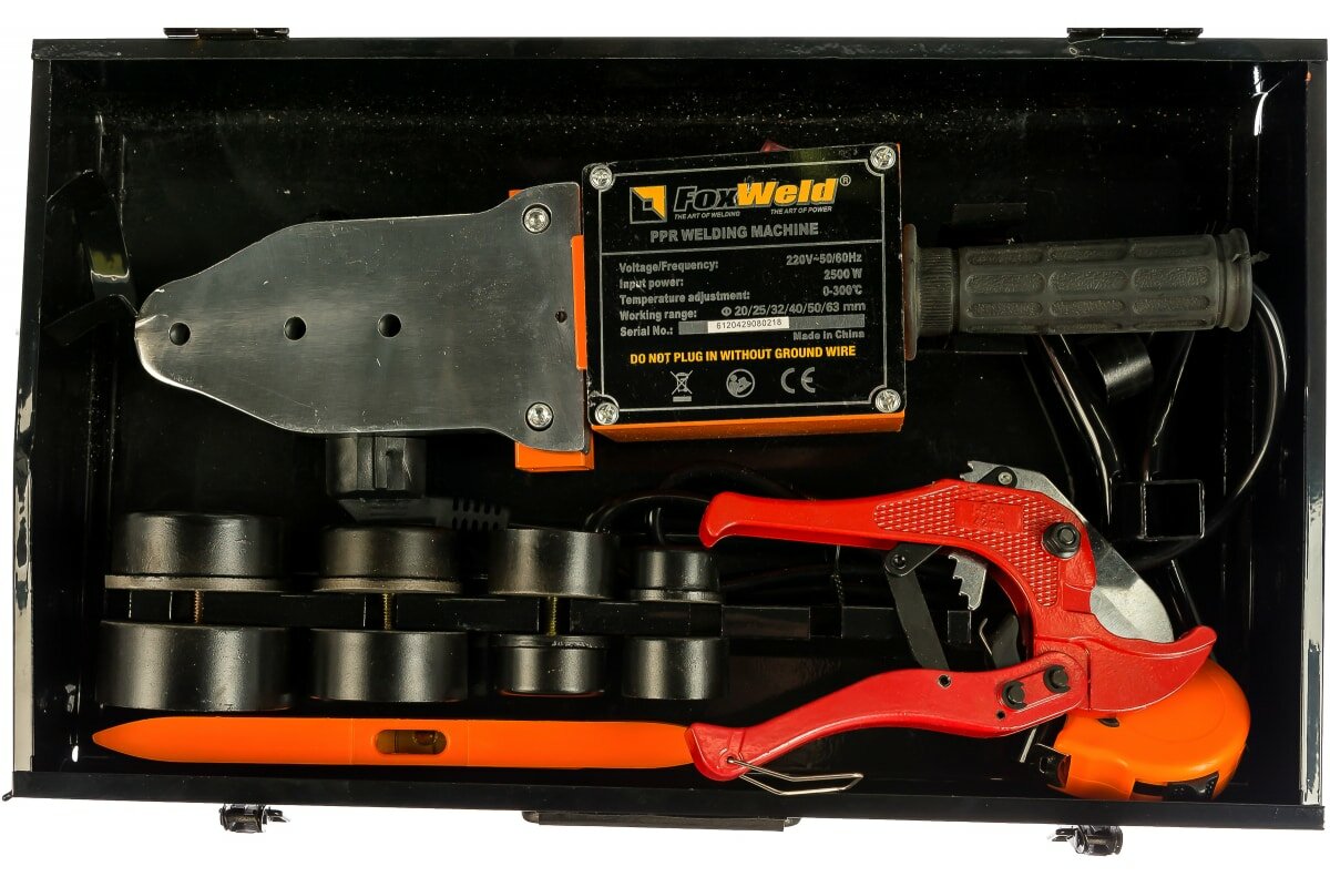 Аппарат для сварки пластиковых труб Foxweld / FoxPlastic 2500 / 2,5 кВт, насадки 20-63 мм., 6120