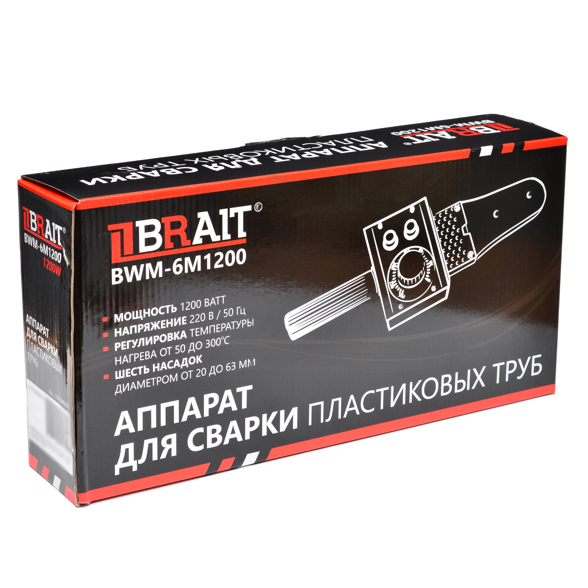 BRAIT Аппарат для сварки пластиковых труб BWM-6M1200 (6 насад. 20-63мм, металл. кейс;мощ.1200ВТ) 10ш