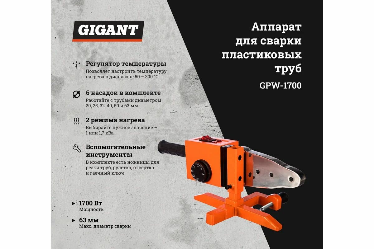 Купить Паяльник для полипропиленовых труб, аппарат, Gigant GPW-1700, набор, ПВХ