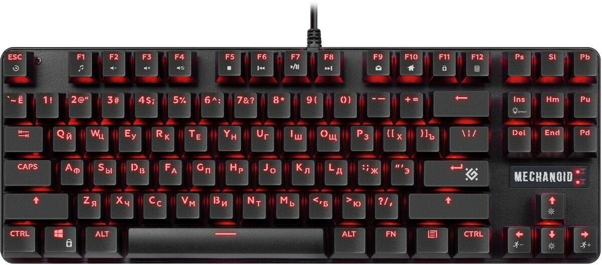 Клавиатура игровая Defender Mechanoid GK-581 RU 87кл. механическая красная подсветка - чёрная 1.5м