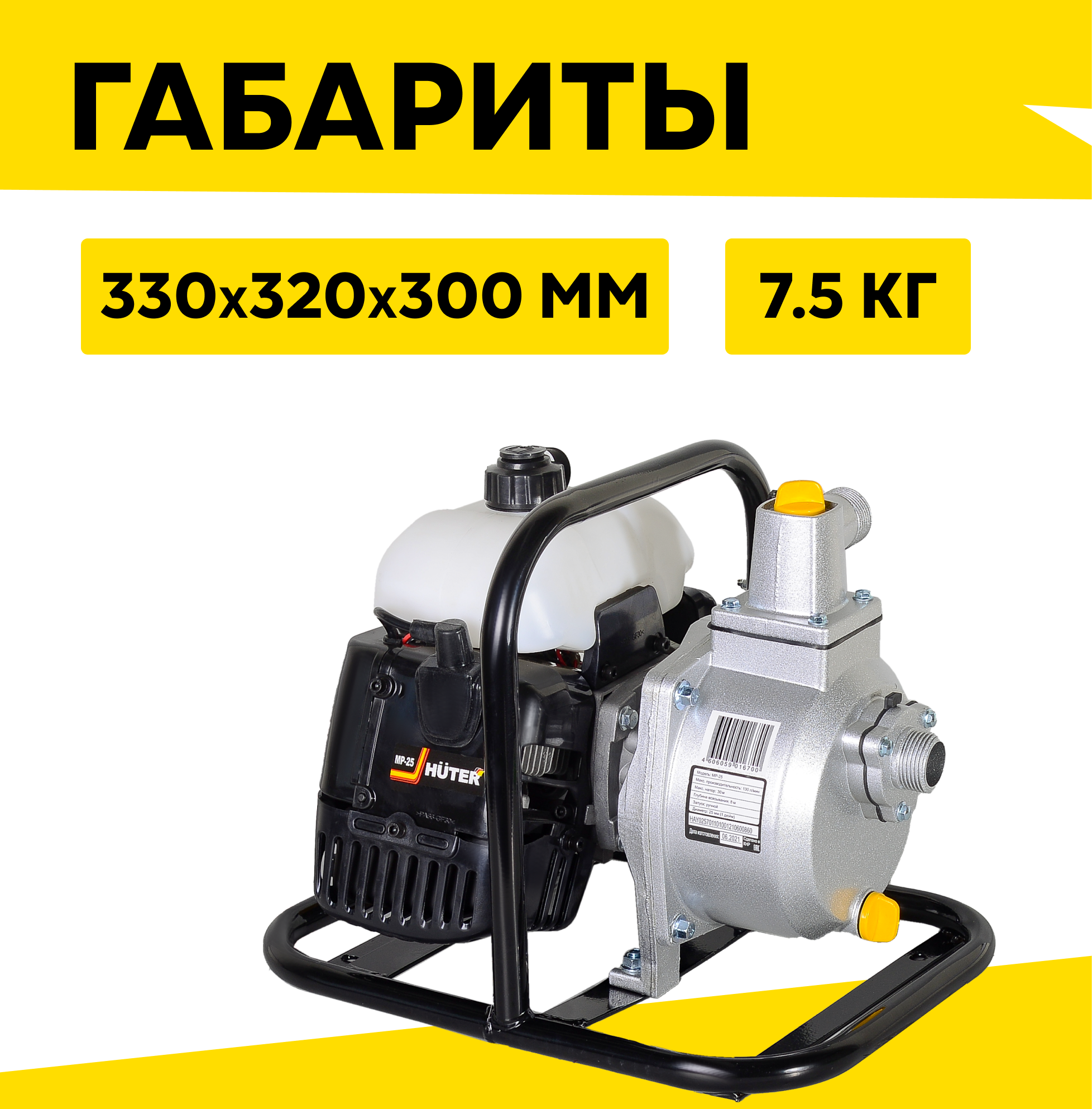 Мотопомпа бензиновая HUTER MP-25, центробежная, самовсасывающая, для чистой воды, 1.5 л. с, 8000 об/мин, 25/1 мм/дюйм интересное: