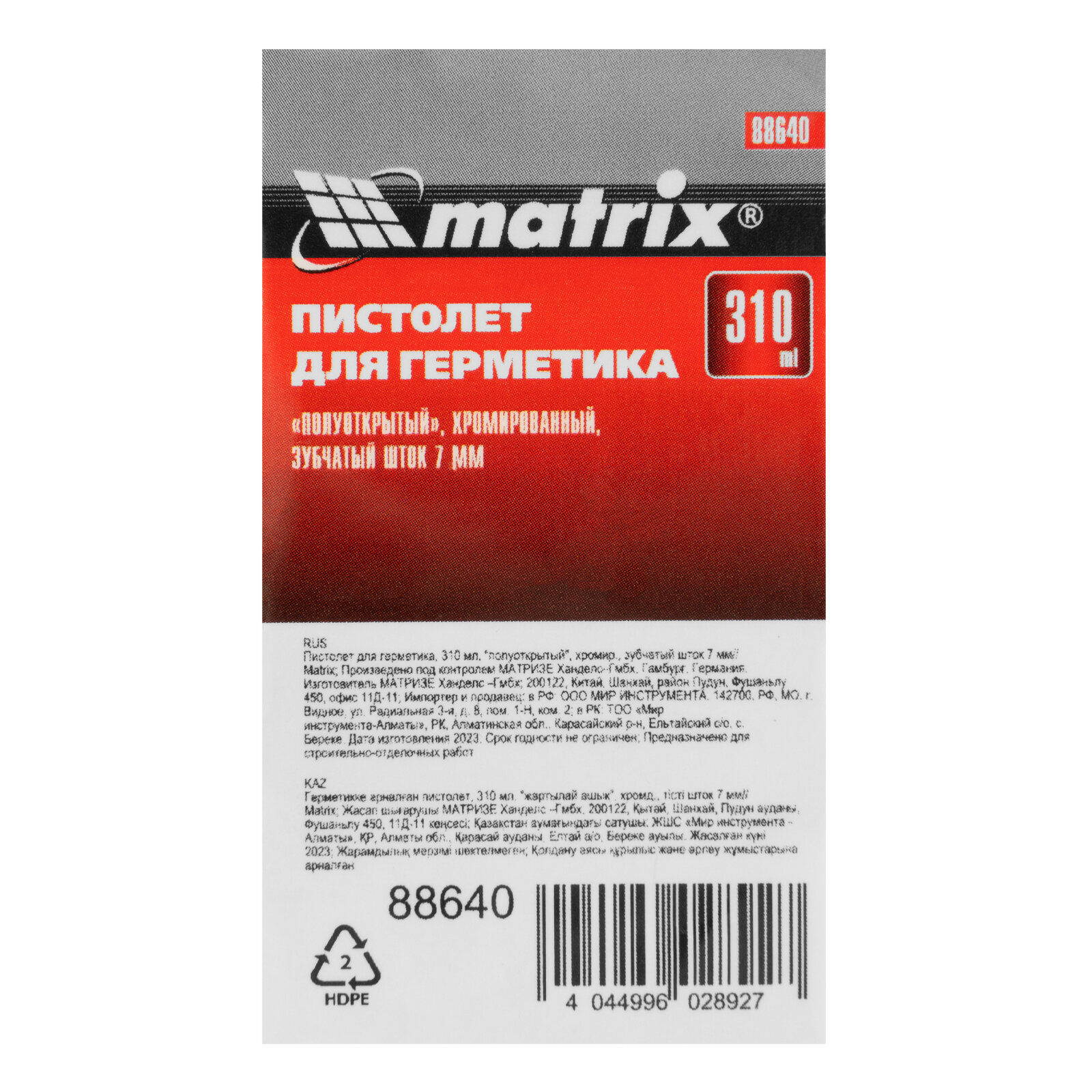 Пистолет Для Герметика, 310 Мл, Полуоткрытый, Хромир. Зубчатый Шток 7 Мм Matrix 88640 Matrix арт. 88640