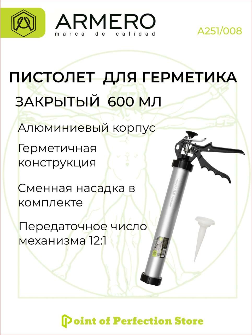 Пистолет для герметика Armero закрытый 600 мл, Armero, А251/008