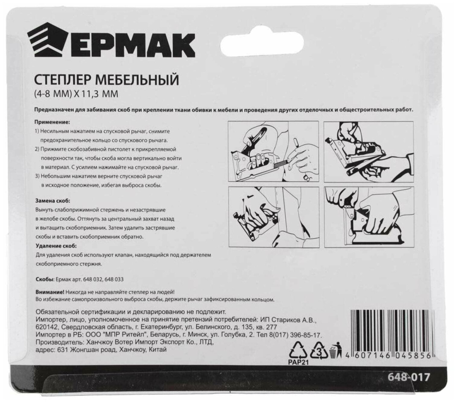 Степлер ермак 648-017 мебельный (4-8мм)*11,3мм