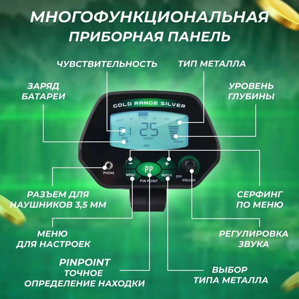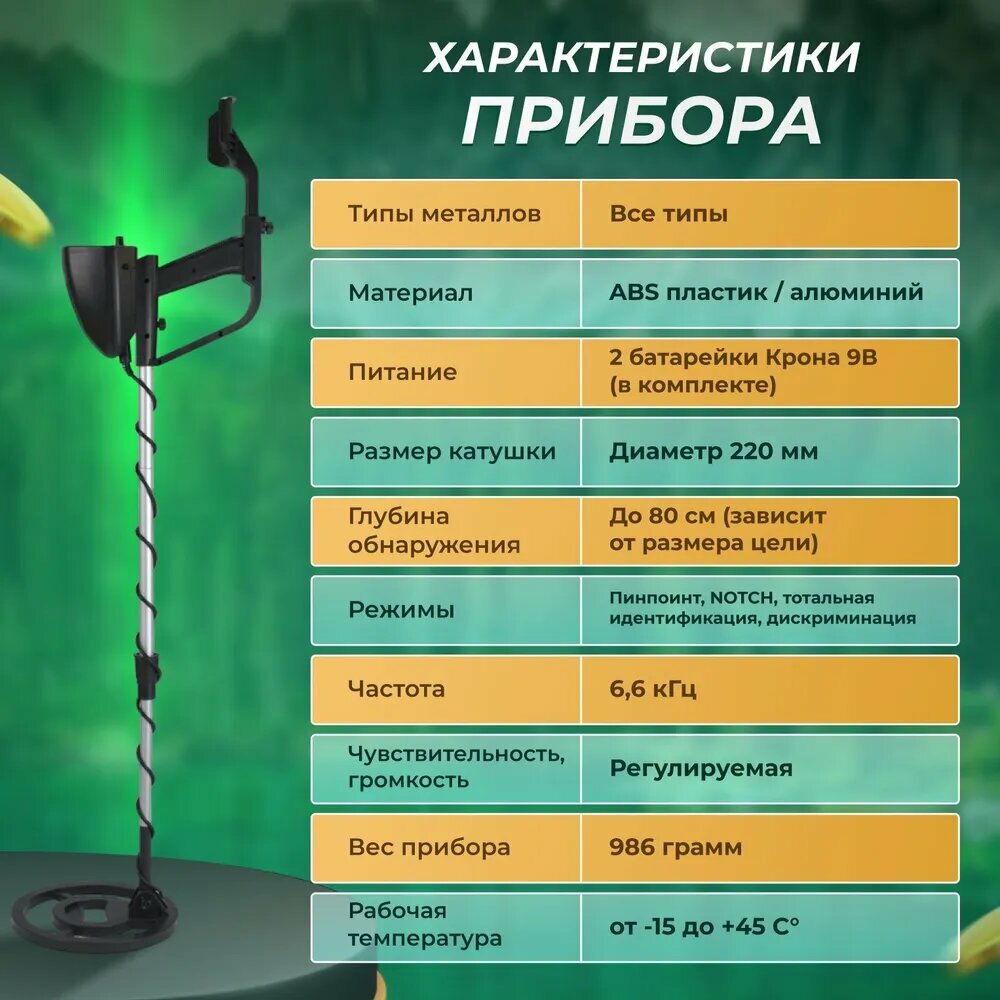 | Минусы: | Водить надо чуть медленнее чем у обычных металлоискателей.. |