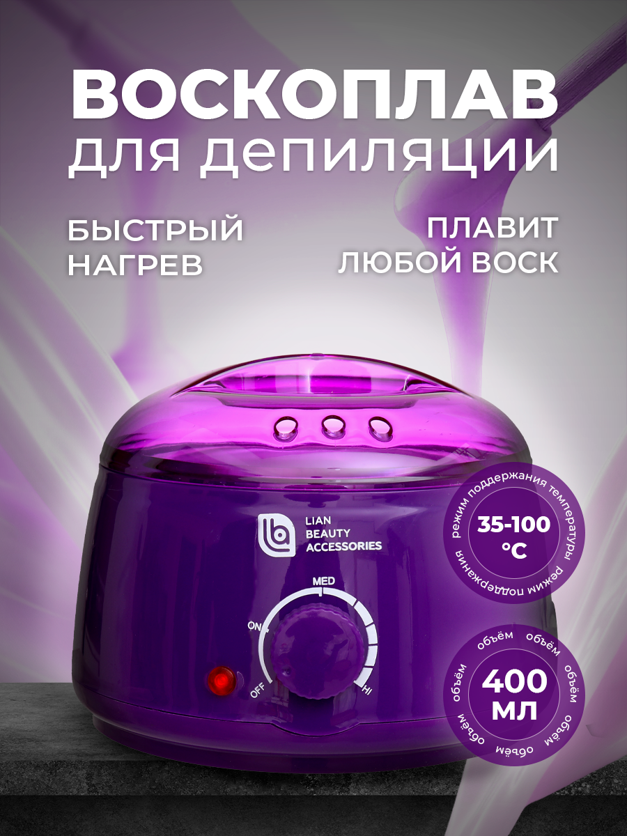LiAN Beauty Accessories Воскоплав баночный фиолетовый/Воскоплав для депиляции/Разогреватель воска/Нагреватель для воска(пасты для депиляции с термостатом) 400 мл