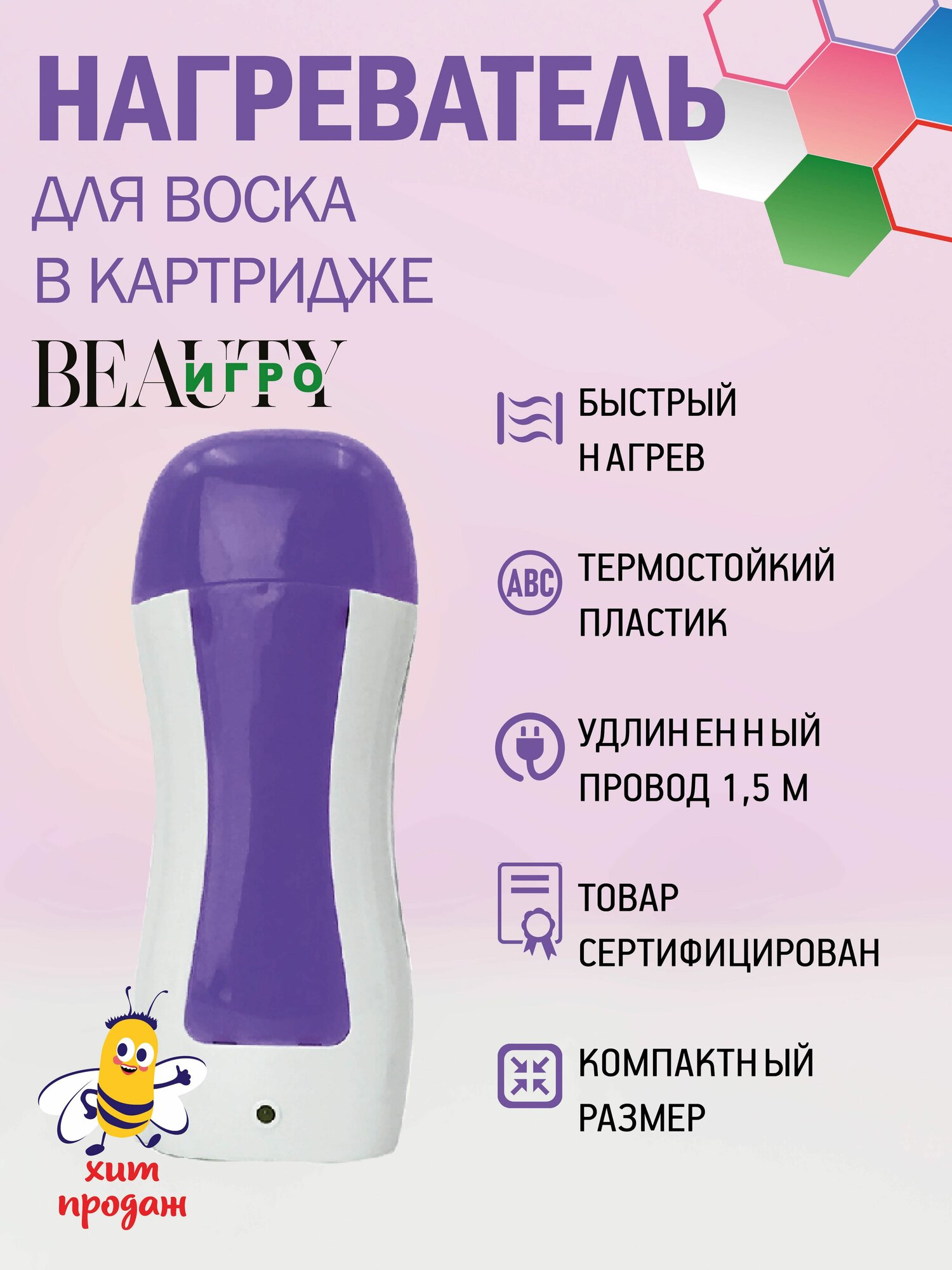 СохранитьIGRObeauty Воскоплав/ Нагреватель для воска в картридже с окошком, 40W - Фиолетовый. интересное: