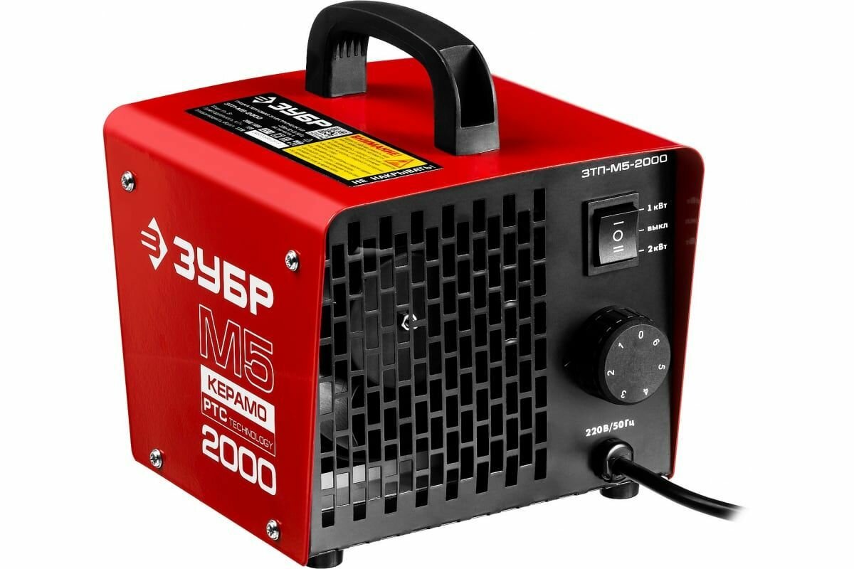 Пушка тепловая М5-Керамо, ЗУБР ЗТП-М5-2000, электрическая, РТС керамический нагревательный элемент, регулировка темп., 2 режима работы, 220В