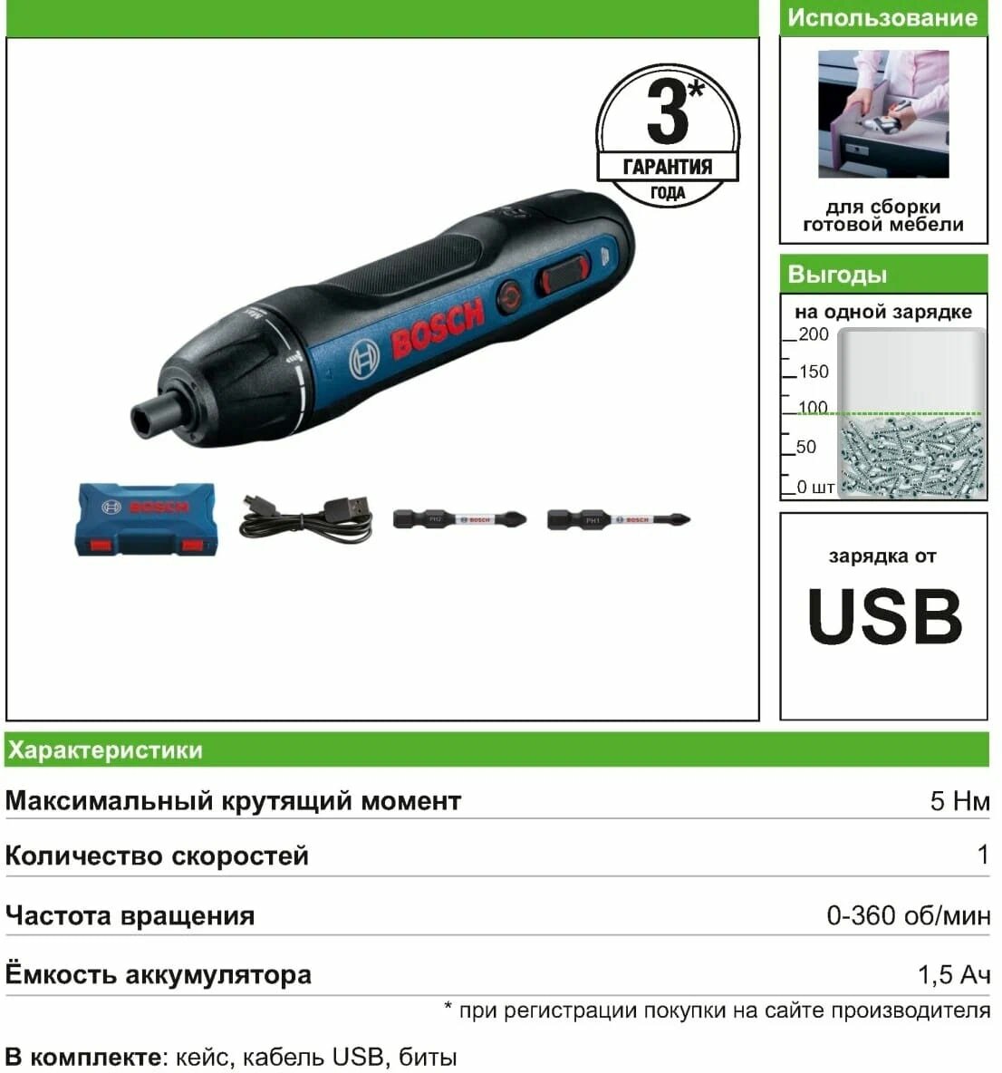 Аккумуляторная отвертка с мощным крутящим моментом BOSCH GO2 интересное: