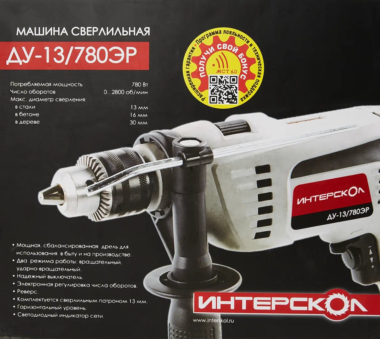 Купить Дрель ударная Интерскол ДУ-13/780 ЭР, от сети, 780Вт, 2700об/мин
